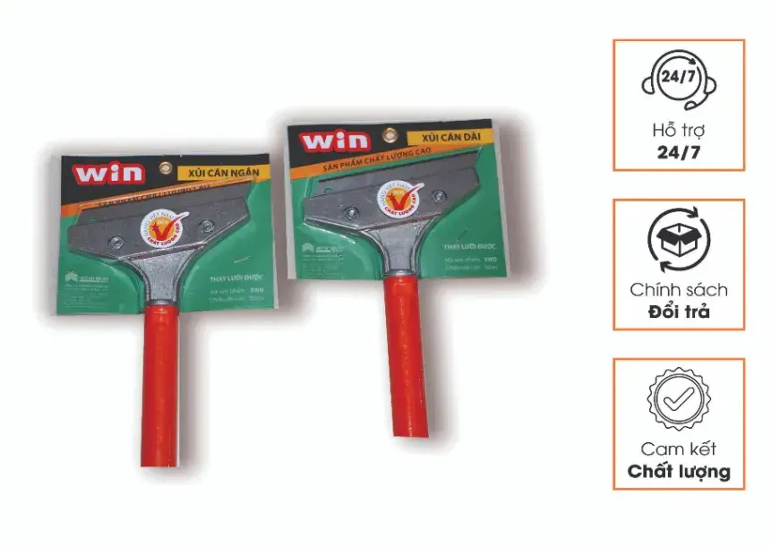 Cây Xủi Win Việt Mỹ là dụng cụ vệ sinh chuyên dụng với lưỡi thép không gỉ siêu sắc, giúp loại bỏ các vết bẩn cứng đầu, cặn vôi, keo, hoặc sơn bám trên bề mặt gạch, kính, sàn nhà một cách nhanh chóng và hiệu quả mà không gây trầy xước. Thiết kế công thái học và cơ chế thay lưỡi an toàn mang lại trải nghiệm làm sạch dễ dàng, tiết kiệm công sức tối đa.